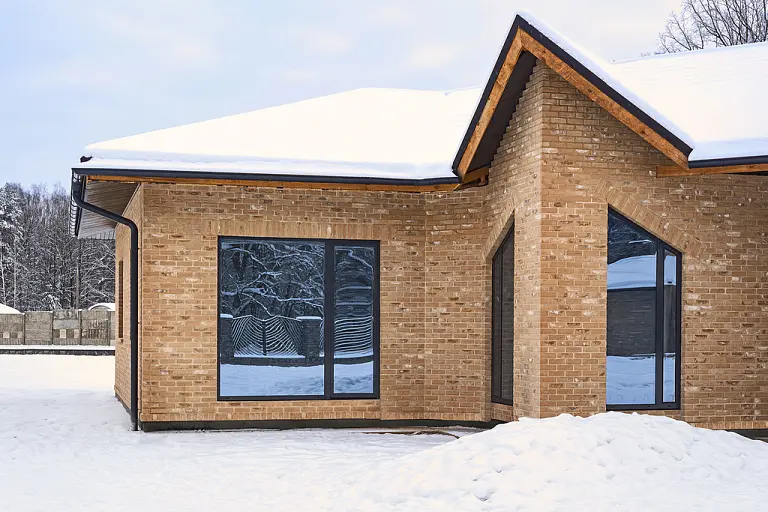 Почти незаметные в экстерьере роллеты со скрытым коробом позволяют управлять световым потоком: ночью затемняют комнаты, утром впускают в них бодрящий свет солнца. Защищают дом от шума, а остекление — от механических повреждений и осадков.