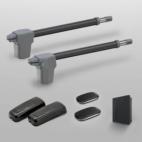 Комплект поставки автоматики: привод (2 шт.), блок управления CUSD-ATW, фотоэлементы P5103, монтажный набор, пульт AT4-L (2 шт.), ключ разблокировки (2 шт.), руководство по монтажу и эксплуатации