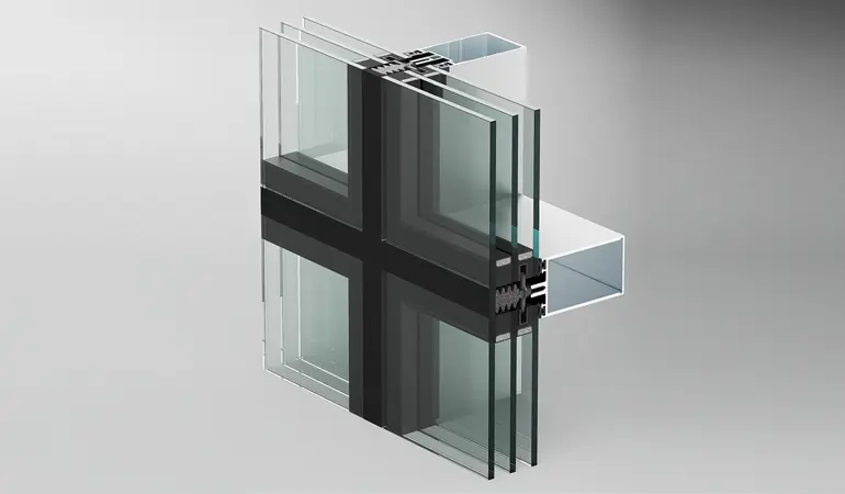 Конечно, и есть несколько вариантов. Для внешней стороны «АЛЮТЕХ» предлагает различные типы оформления: от структурного шва до составных пилонов. А фасад внутри помещения можно дополнить Т-стойкой с тонкой линией.
