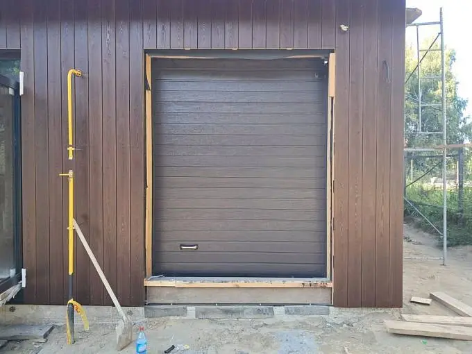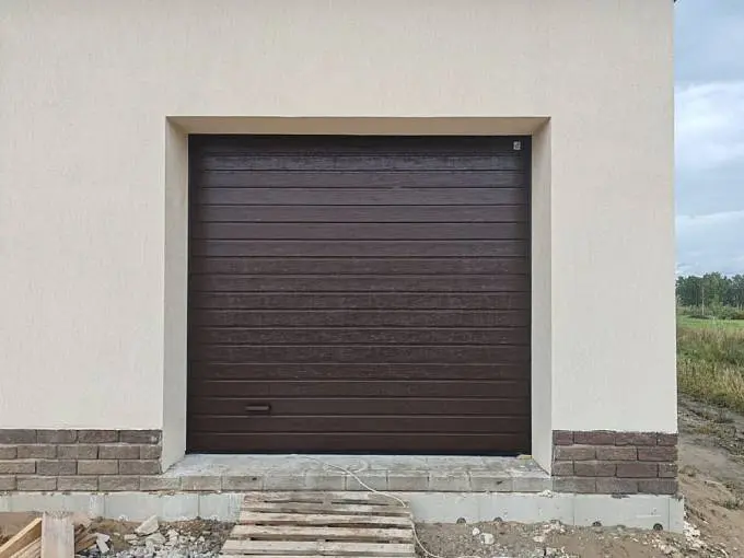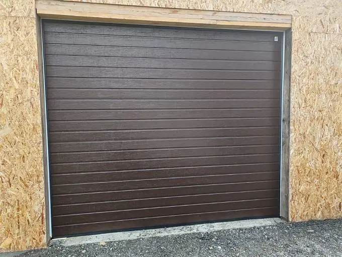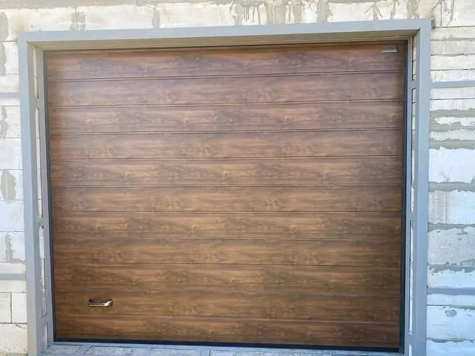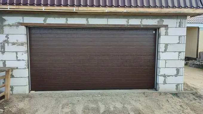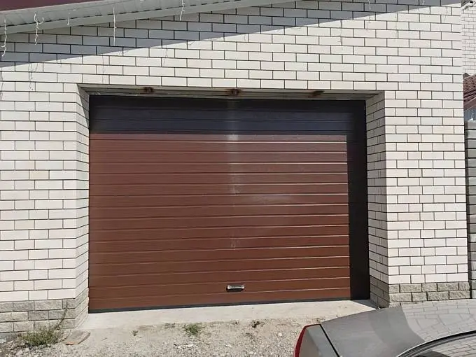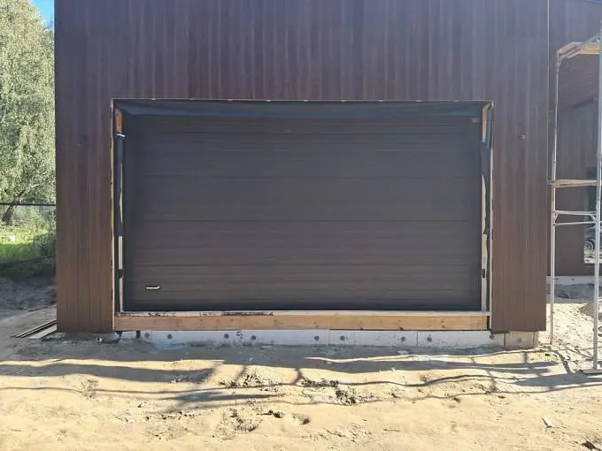 Долго выбирали цвет ворот, так как цветовая гамма очень большая. Остановились на панель филенка темный дуб. Были проблемы в сроках изготовления. Но монтаж сделали быстро. Спасибо.