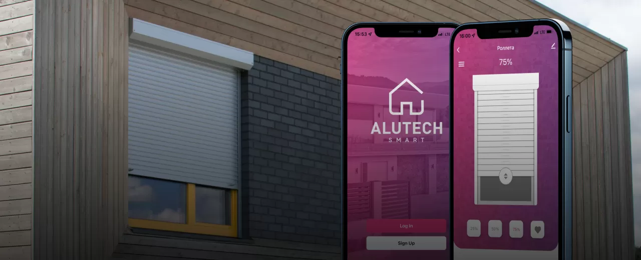 При подключении ALUTECH Smart вы сможете управлять роллетами со смартфона, через голосового помощника или с помощью пульта.